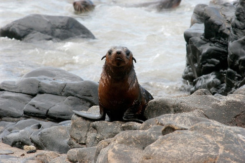 Australian fur seal pups have fully moulted into their waterproof two-layered coat and are starting to explore the waters around Seal Rocks, venturing further to play and explore as they prepare for weaning and having to find their own food.