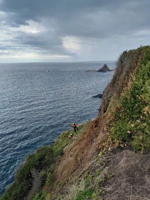 The Nature Parks dedicated Reserves Rangers continue to scale the cliffs of Phillip Island (Milawul) removing the notorious weed African boxthorn. On their last few missions, the team have been at Pyramid Rock and have removed all bushes from this section of coastline. A highly skilled team continuing a near 30-year legacy of removing this weed of national significance.