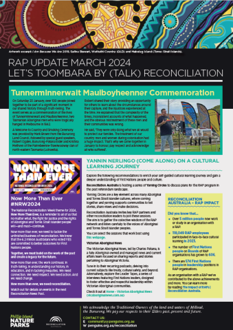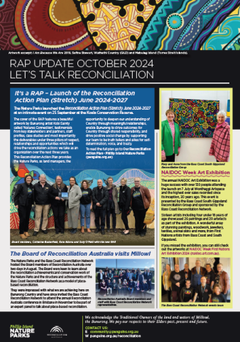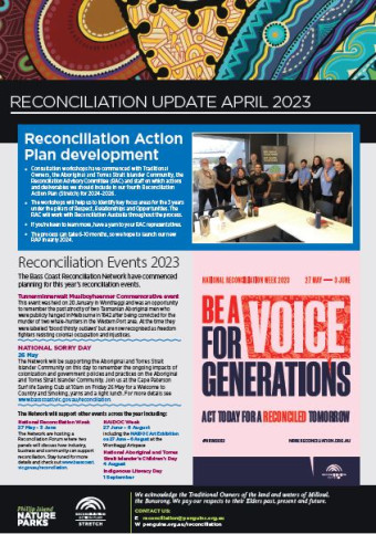 Bass Coast Reconciliation Network's participating local organisations including Bass Coast Shire Council, Phillip Island Nature Parks, Bass Coast Health and Westernport Water, along with Traditional Owner Organisations, Aboriginal and Torres Strait Islander Community representatives and the Bass Coast and South Gippsland Reconciliation Group are proud to work together for reconciliation and recognition.
