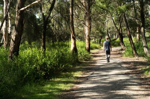 Known as the ‘Bush to Bay’ track, this walk, or ride features bushland, wetlands and bay views. The wide paths are accessible for prams and bicycles.