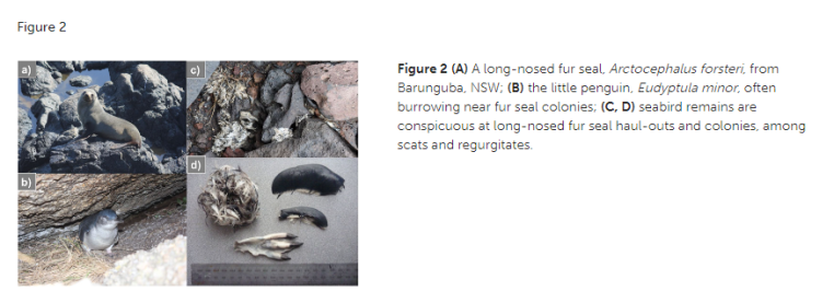 Long-nosed fur seals are re-establishing small breeding colonies on offshore islands across Victoria, raising concerns over their interactions with seabirds, particularly little penguins. Their increasing population is a story of recovery since they were wiped out in Bass Strait by sealers in the early 1800s; however, they are known to predate seabirds making it important to understand predatory interactions with little penguins. A recently published paper2 used two methods, DNA and prey hard parts identification, to measure seabird predation from seal scats across four sites in Bass Strait.