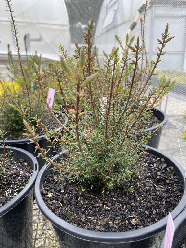 The exceptionally dry late summer and early autumn has impacted the translocated critically endangered crimson berry, Leptecophylla oxycedrus, plant population at Cape Woolamai. It was established in 2023 to increase overall numbers and enhance the natural plant ecosystem. There was a 50% survival rate of translocated plants recorded in early March. Watering by hand throughout March, coupled with cooler and more moist conditions thereafter will hopefully sustain the surviving plants. Additionally, crimson berry plants growing in the Barb Martin Bushbank that can serve as replacements for any losses.