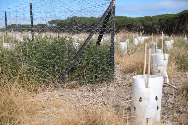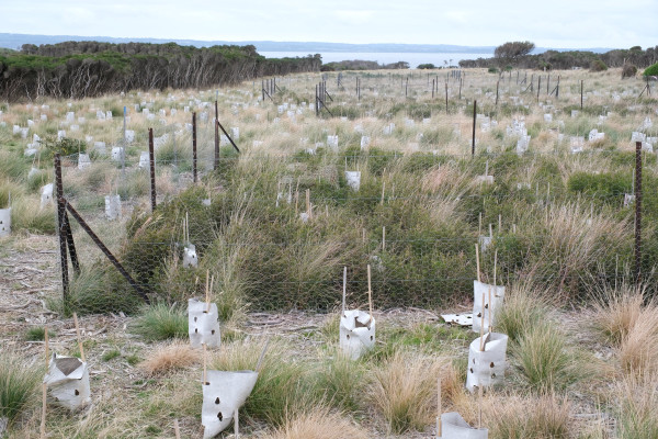 To date, results have shown that guarding improves survival rates by three to four times during establishment, and the fenced browsing exclusion trial indicates other factors influencing success. The browsing exclusion trial is a feature of the ‘Future-Proofing Little Penguins’ project and newly established green firebreaks. The fences effectively excluded all large animal browsers (wallabies, geese, rabbits, and possums) on the Mandeville Road firebreak, and after six months, the results suggest that browsers have had a significant impact on survival. Establishment of more shrubs and trees and the provision of shadier, cooler penguin habitat is also a focus. The browsing exclusion trial is only just starting to provide an insight into the effects of browsers on the vegetation and of the broader ecological dynamics of the peninsula and more will be learned in the years to come. Information gained will help inform future conservation actions and lead to better and more sustainable conservation outcomes.