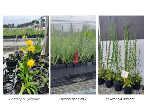 Image 14-16: Podolepsis jacoides, Olearia species 2, Lawrencia spicata