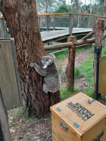 The Bluegum trail koalas and their joeys were captured for annual health checks in September. This presented an opportunity to microchip our new joeys at Newhaven Veterinary Clinic and confirmed their genders to be one male and two females. These welcome additions to the Koala Conservation Reserve were then relocated to the Koala Boardwalk to allow up close viewing experiences in the treetops.