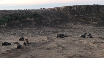 Image 21: The rocky ridges that the pups are playing on have only recently been uncovered