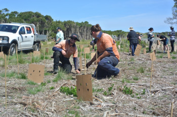 Approximately 3.2ha of dense, woody vegetation — swamp paperbark (Melaleuca ericifolia) — was cleared during mulching and slashing operations from the firebreaks. It was replaced by 15,000 indigenous, fire-retardant, herbaceous plants over the planting season including bower spinach (Tetragonia implexicoma). Plantings were successfully carried out by the Nature Parks staff, contract planters, as well as Nature Parks and corporate volunteers during dedicated project volunteer planting days supported by the Penguin Foundation.