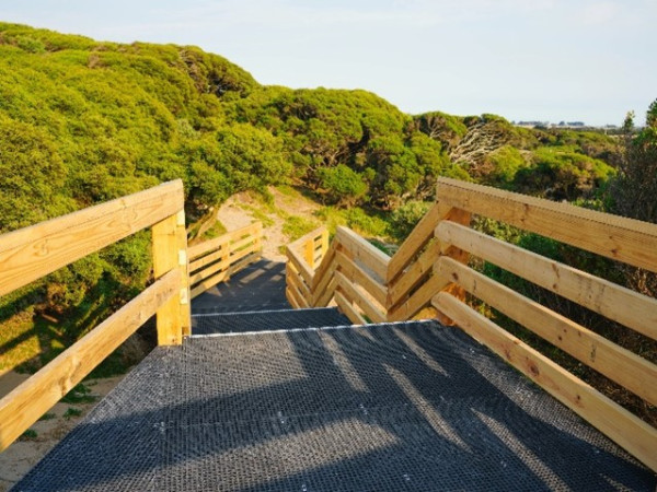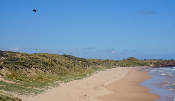 Forrest Caves beach access stairway, car park and toilet are currently closed due to the construction of the new northern stairway. Access to the beach remains available for beachgoers via the nearby Bruce Avenue access track. To minimise environmental impact, a helicopter was used to lift 21 loads of material in just 55 minutes! Limited work will be undertaken during the short-tailed shearwater fledging period.