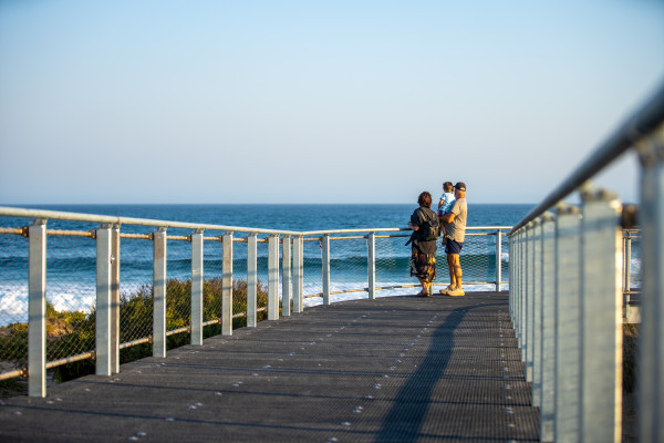 Image 8: Visitors arrive at the Summerland Beach on the new Shearwater Boardwalk.