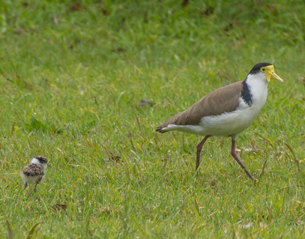 - Masked lapwing chicks emerging and making the run for food on ovals and parks or nestling under parents for warmth.