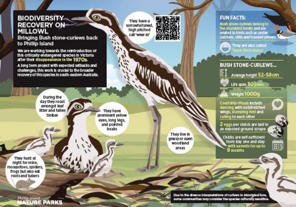 This plan looked at both current vulnerable species and the recovery of threatened fauna that were once found on Phillip Island (Milawul), with the bush stone-curlew identified as a priority species.